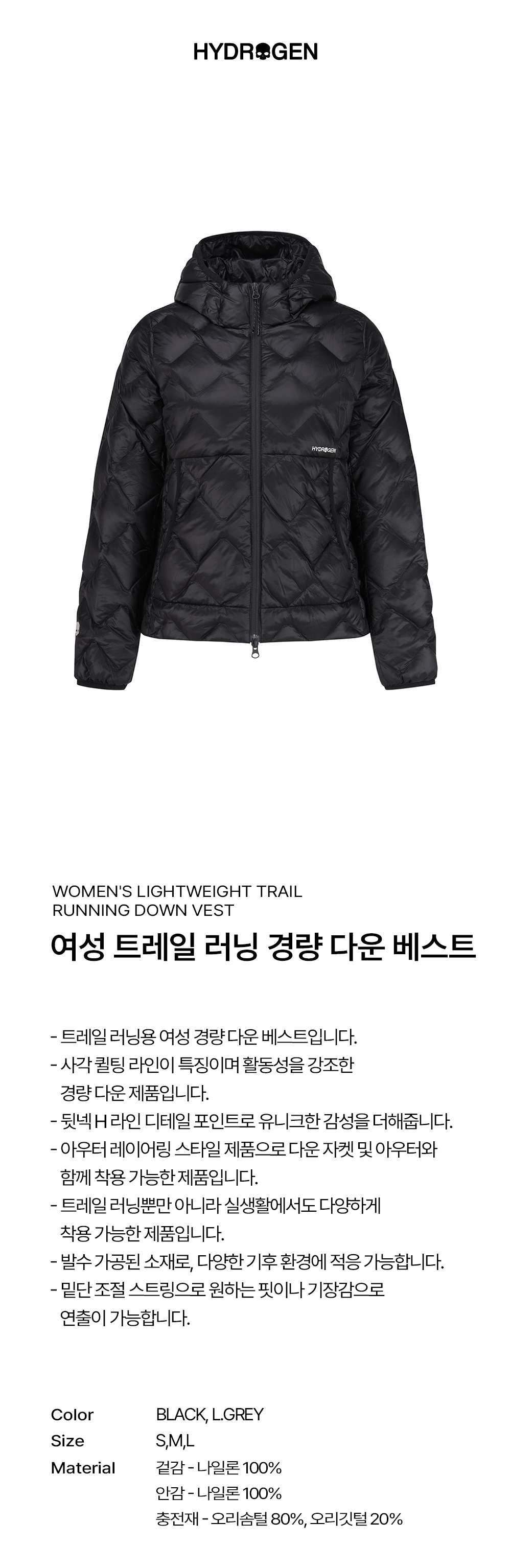 하이드로겐 여성 트레일러닝 경량 다운 베스트 블랙