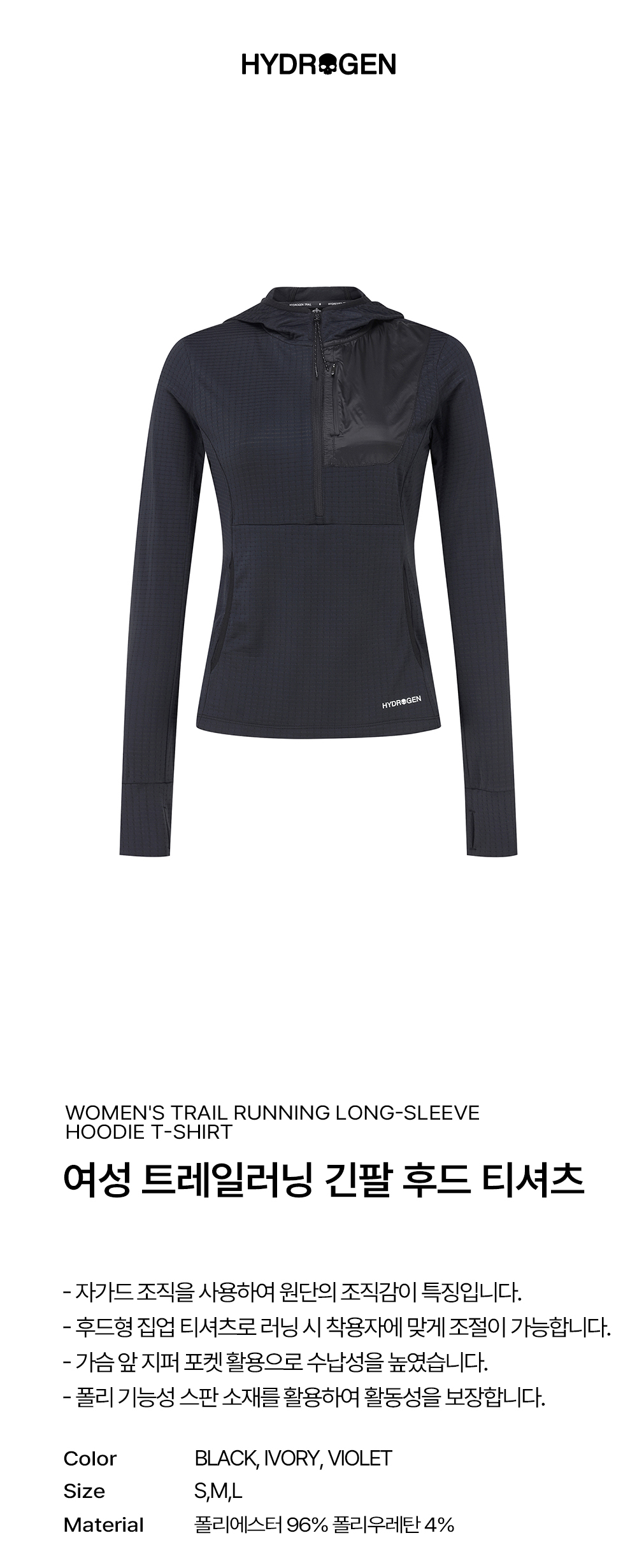 하이드로겐 여성 트레일러닝 긴팔 후드 티셔츠 블랙