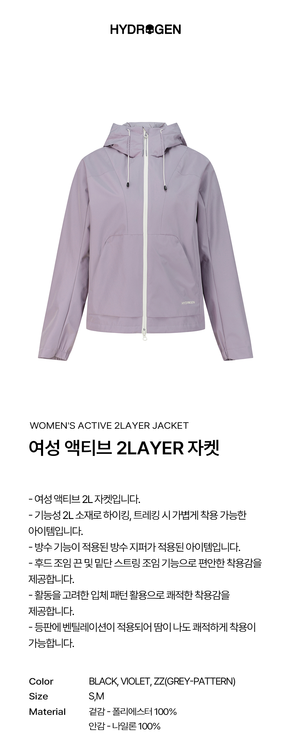 하이드로겐 여성 액티브 2LAYER 자켓 바이올렛