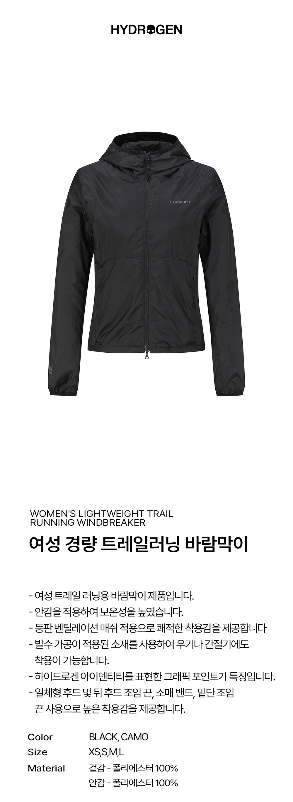 하이드로겐 여성 경량 트레일러닝 바람막이 블랙