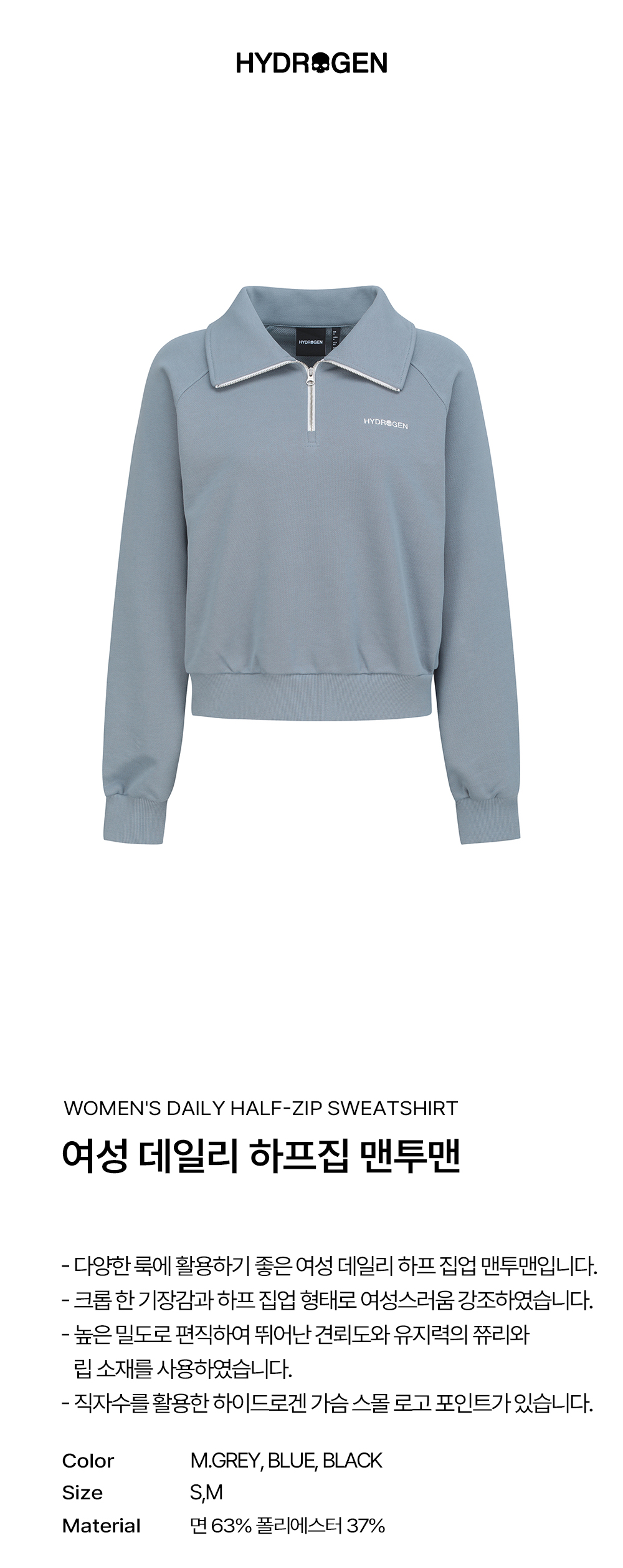 하이드로겐 여성 데일리 하프집 맨투맨 블루