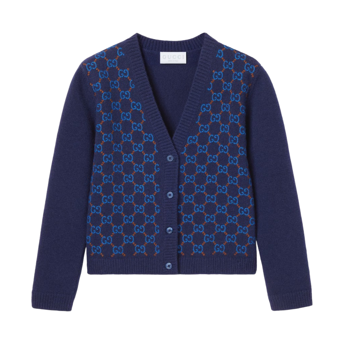 (Kids) Gucci Wool Cardigan with Embroidery Dark Blue