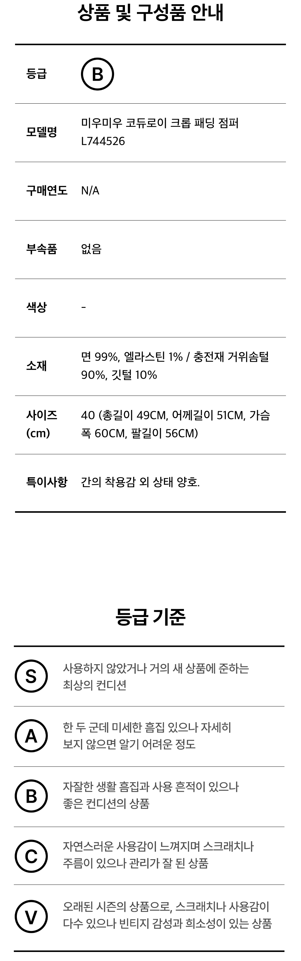 미우미우 코듀로이 크롭 패딩 점퍼 L744526