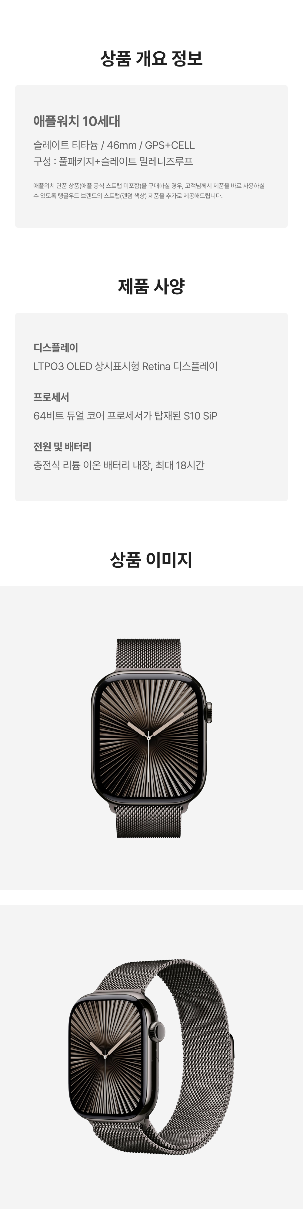 [S등급] 리퍼비시 애플워치 10 46mm 셀룰러 슬레이트 티타늄 케이스 밀레니즈 루프 슬레이트
