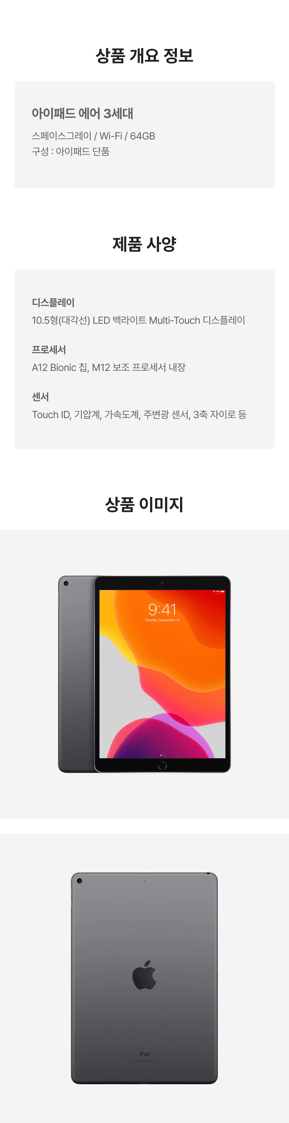 [S등급] 리퍼비시 아이패드 에어 3세대 wifi A12 Bionic 64기가 스페이스그레이