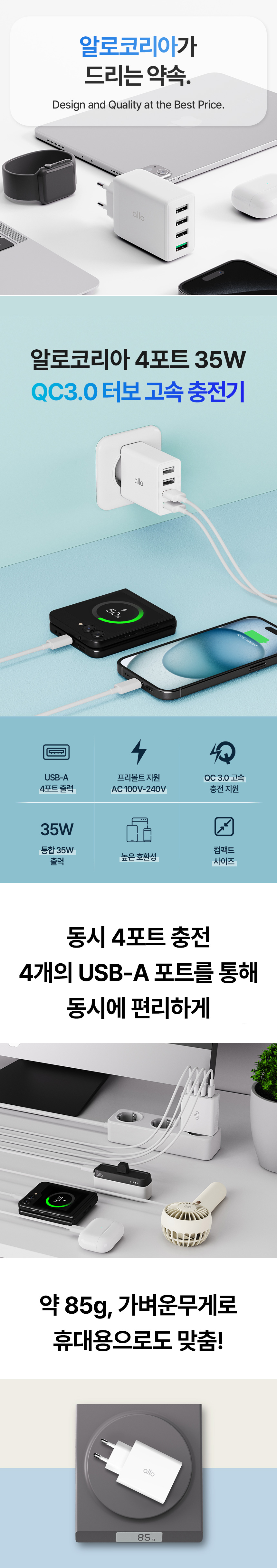 알로코리아 터보 4포트 35W QC3.0 고속 멀티충전기 UC435QC