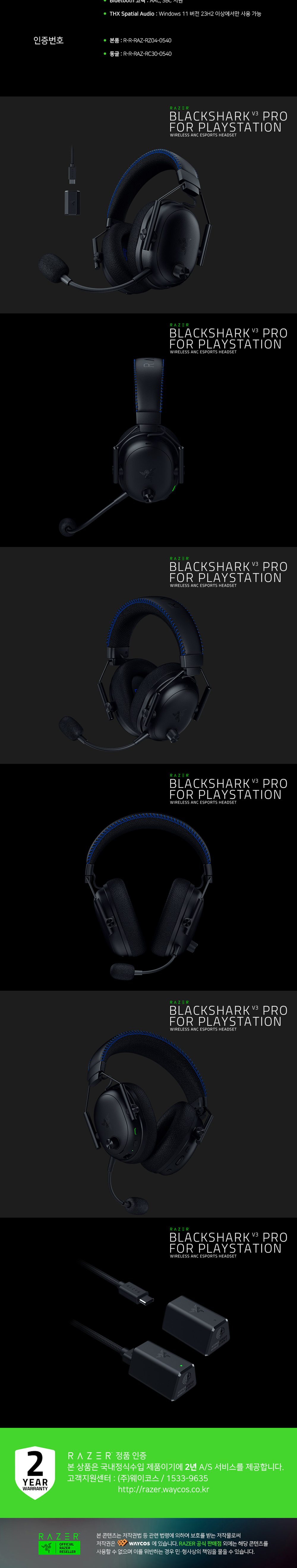 레이저 블랙샤크 V3 프로 플레이스테이션 공식라이센스 PS5/PC겸용 무선 게이밍 헤드셋 블랙