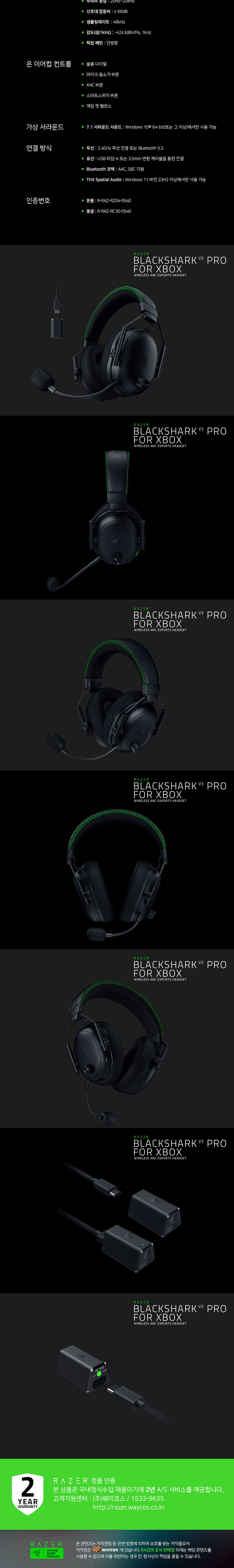 레이저 블랙샤크 V3 프로 Xbox공식라이센스 XBOX/PC겸용 무선 게이밍 헤드셋 블랙