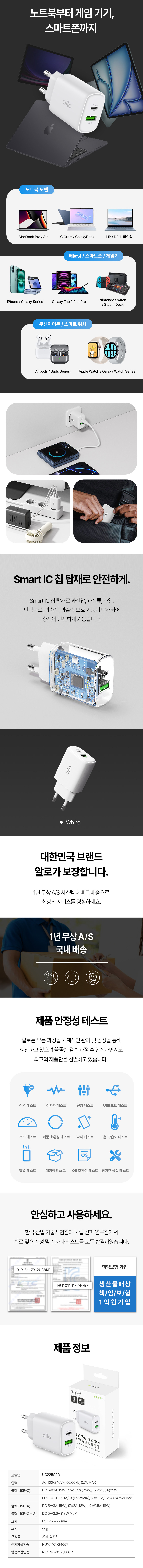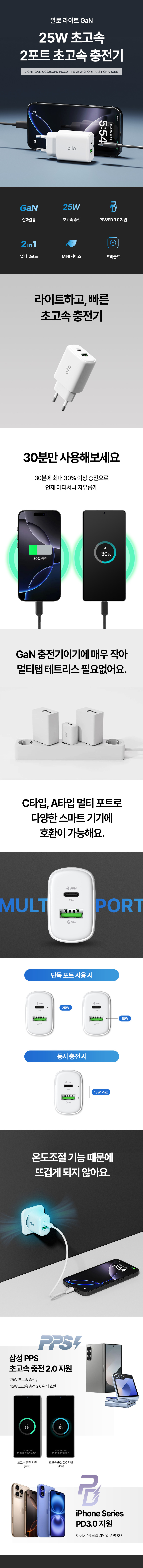 알로코리아 라이트 GaN 25W 갤럭시 아이폰 초고속 멀티 충전기 어댑터 UC225GPD