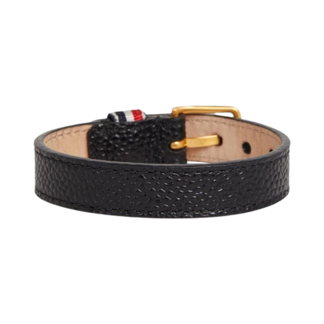 톰브라운 페블 그레인 레더 스트라이프 키퍼 브레이슬릿 블랙