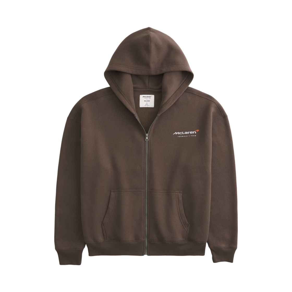 McLaren Racing x Hollister Boxy Graphic Zip-Up Hoodie Dark Brown