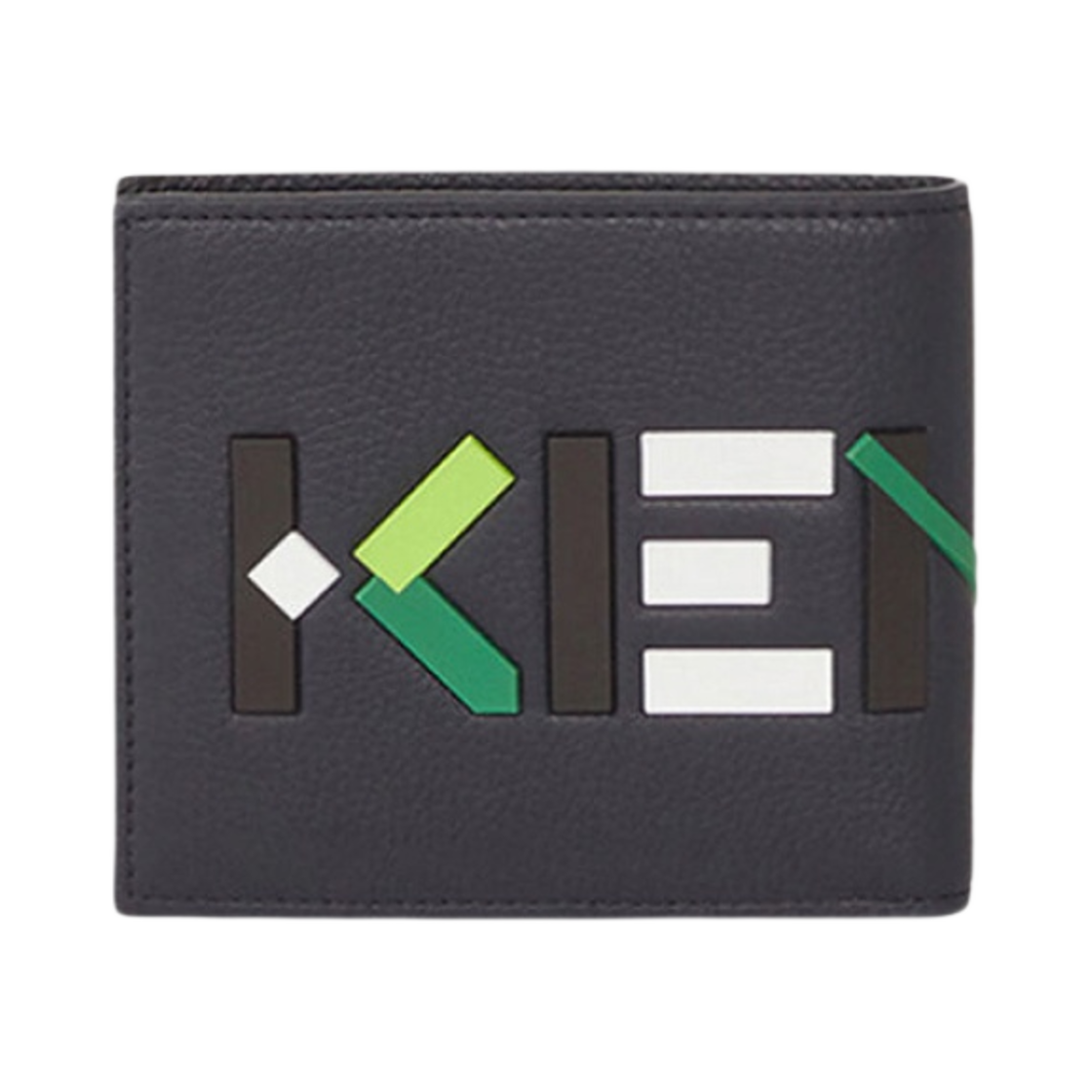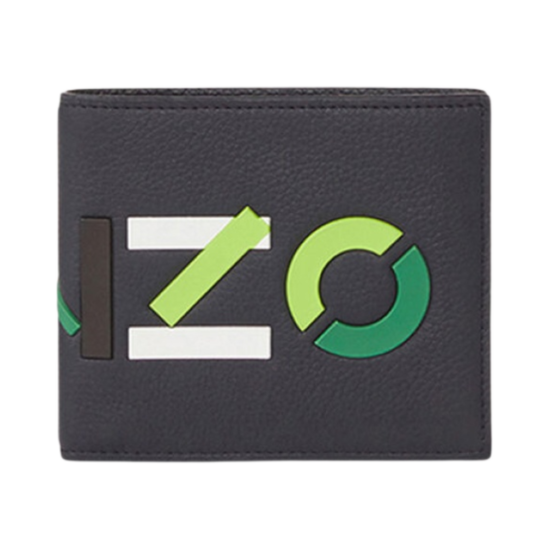 Kenzo Logo Foldable Leather Wallet Navy Blue