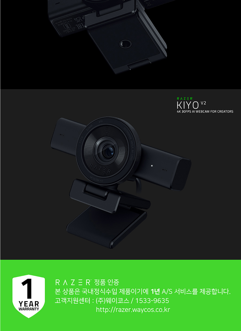 레이저 키요 V2 4K 30FPS 지원 프라이버시 셔터 탑재 스트리밍 웹캠