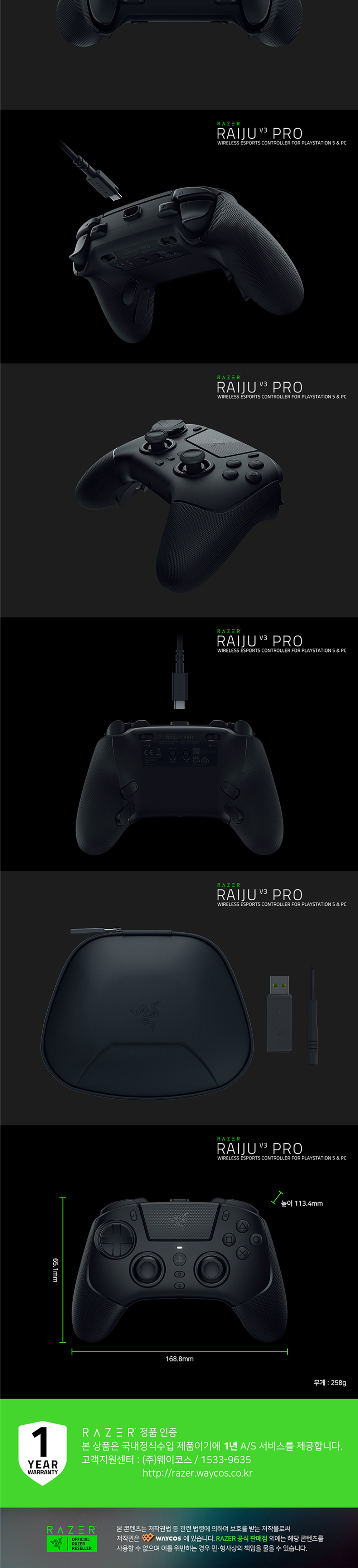 레이저 라이주 V3 프로 플레이스테이션 공식라이센스 PS5/PC겸용 무선 컨트롤러