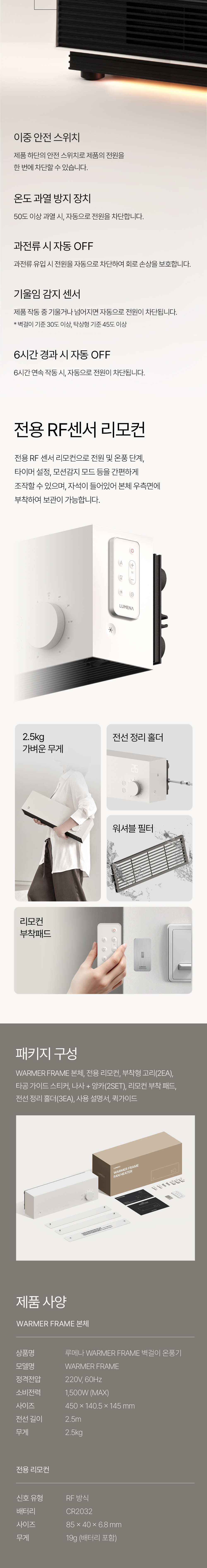루메나 가정용 벽걸이 욕실 온풍기 워머 프레임 화이트