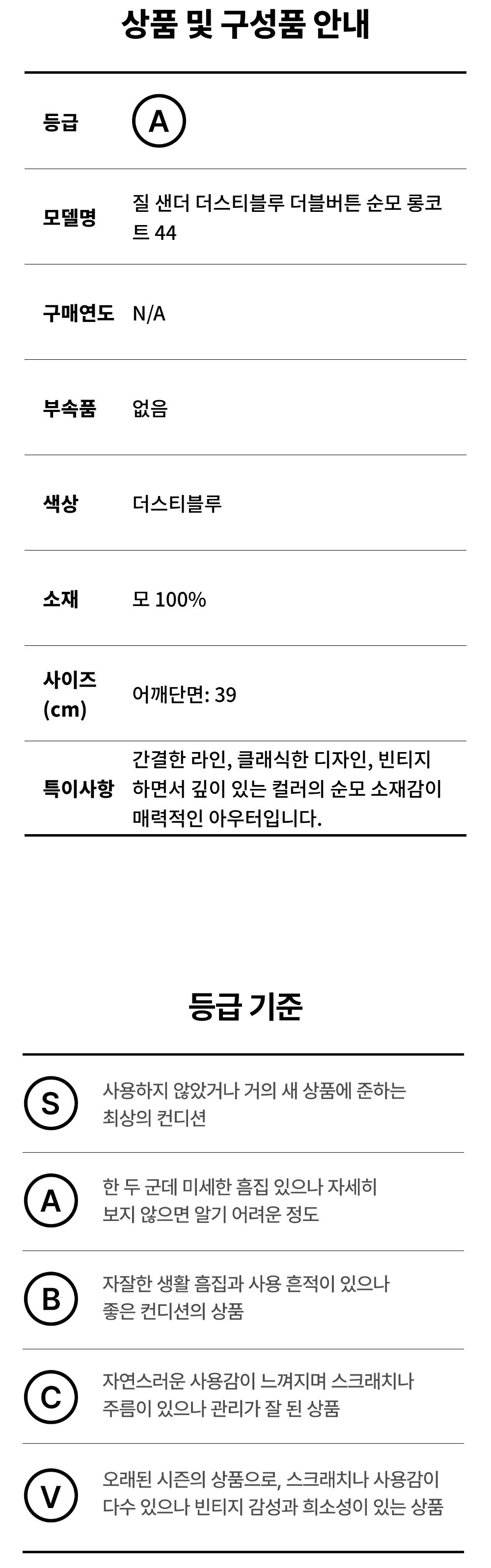질 샌더 더스티블루 더블버튼 순모 롱코트 44