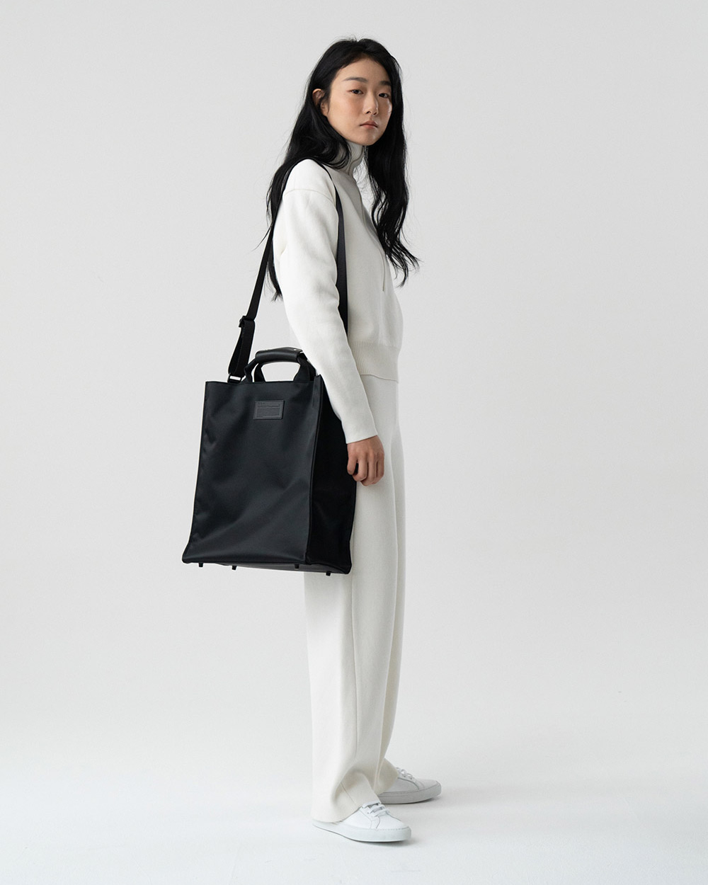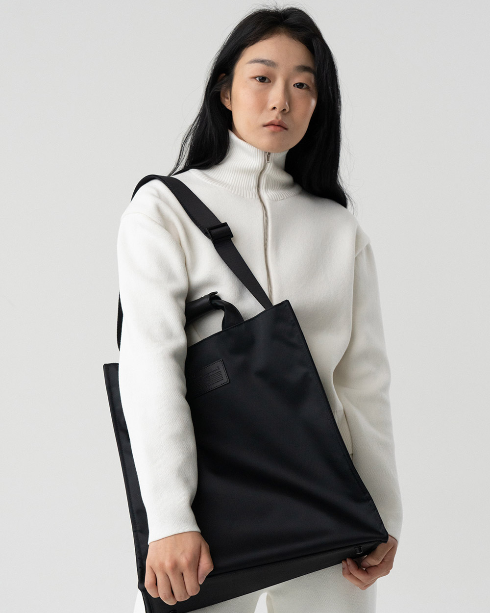 제품 설명- 군더더기 없는 심플한 디자인의 토트백 - 숄더로 연출할 수 있는 스트랩 내장 (탈부착 불가능) - 빅사이즈 디자인으로 노트북과 서류 등의 다양한 소지품 보관 용이 - 소가죽으로 로고 패치와 핸들 싸개를 디자인하여 고급스러움 강조 - 가방 안쪽 부분 여밈 자석으로 내용물 흘러나오지 않게 보관 가능 - 가죽 핸들싸개 부분은 ykk 스냅 사용 - 남녀구분 없이 사용 가능주의 사항- 이염시 마른 수건으로 닦아서 사용 - 블랙 코팅된 부자재(사각링, 속고발등)는 추후 벗겨질 수 있음사이즈W36 x D13.5 x H40cm strap : 3.8 x 11.5cm 소재NYLON 100%, LOGO PATCH : LEATHER 100%원산지KOREA