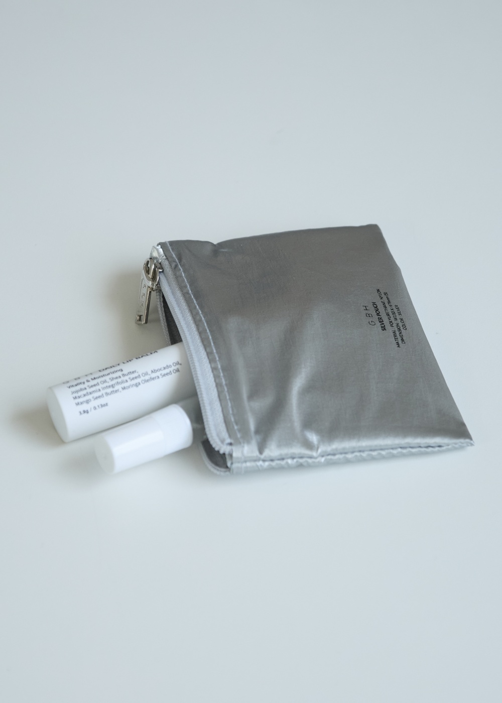 실버 컬러의 코팅 원단과 GBH 로고 지퍼를 이용한 생활방수 기능이 있는 SILVER POUCH입니다. S 사이즈는 휴대가 간편한 사이즈로 제작되었으며 카드, 이어폰, 작은 화장품 보관이 용이합니다. M 사이즈는 넉넉한 수납공간으로 스테이셔너리, 화장품, 여성용품 보관이 가능하며 외출 시 물건을 깔끔하게 정리 가능합니다. 사이즈 S : W115 X H78mm / 9g M : W160 X H117mm / 13g (* 기준에 따라 최대 1~2cm 정도의 사이즈 편차가 있을 수 있습니다.) 소재 POLYURETHANE 50%, NYLON 50% 원산지 KOREA