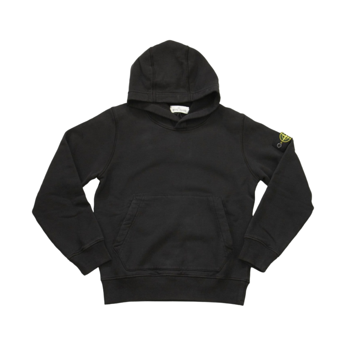(Kids) Stone Island 61640 Cotton Fleece Hooded Sweatshirt Black - 21FW