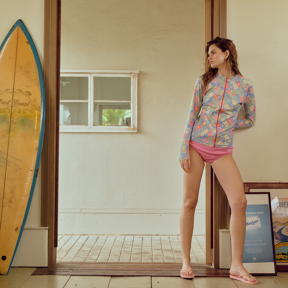 록시 투더비치 레귤러 긴팔 집업 래쉬가드 (RF21RZ070FLW)