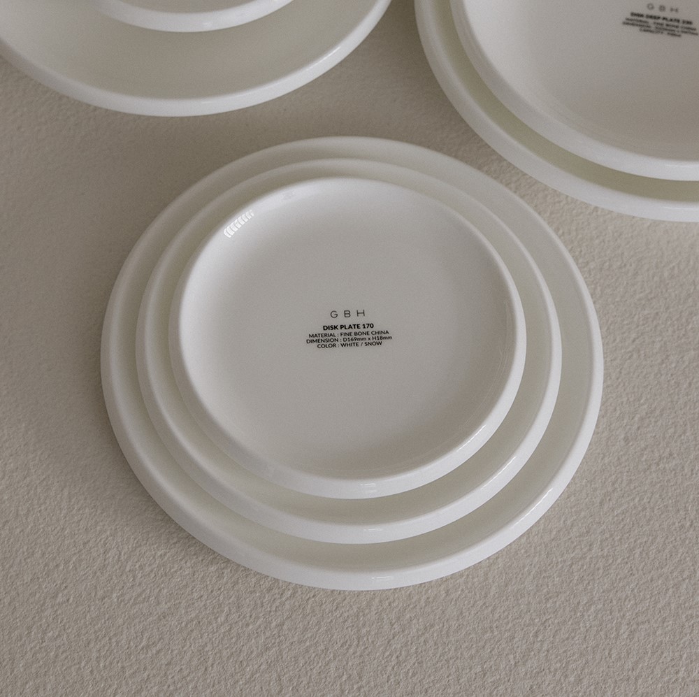 제품 설명 음식을 담아낼 수 있는 면이 넓어 요리를 돋보이게 해주는 플레이트입니다. 림 부분의 일정한 각도는 잡기에 편하고 서브가 용이하게 제작되었습니다. 사용하지 않을 때에는 식기장에 여러 장을 겹쳐 쌓아둘 수 있습니다. 스태킹하였을 때, 안정적인 파사드를 볼 수 있어 사용하지 않을 때의 심미성도 뛰어납니다. GBH X NIKKO 컬렉션 제품을 모두 함께 매치한다면, 보다 더 완성도 높은 테이블 룩을 연출할 수 있습니다. 순백의 유려한 파인본차이나 세라믹에 GBH의 깔끔한 로고가 더해졌습니다. 사이즈 170 : D16.9 x H1.8cm 205 : D20.4 x H1.9cm 240 : D23.9 x H1.8cm소재 CERAMIC / FINE BONE CHINA (50% bone ash)원산지JAPAN 소재 CERAMIC / FINE BONE CHINA (50% bone ash) 원산지JAPAN