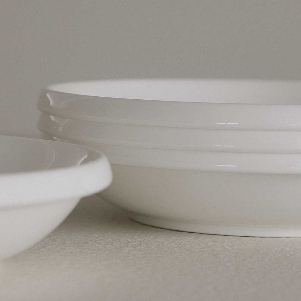 제품 설명 어떠한 요리를 담아도 좋을 딥플레이트입니다. 메인디쉬를 담아내어도 좋고, 과일을 다양하게 담아두기도 좋습니다. 비슷한 사이즈의 볼과 비교하였을 때 밑면이 조금 더 넉넉한 것이 특징입니다. GBH X NIKKO 컬렉션 제품을 모두 함께 매치한다면, 보다 더 완성도 높은 테이블 룩을 연출할 수 있습니다. 순백의 유려한 파인본차이나 세라믹에 GBH의 깔끔한 로고가 더해졌습니다. 사이즈 230 : D22.6 x H4.7cm 270 : D26.9 x H4.1cm 소재 CERAMIC / FINE BONE CHINA (50% bone ash) 원산지JAPAN
