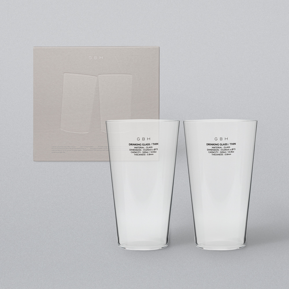 제품 설명 물, 커피, 주스 등 다양한 음료를 즐기기에 적합한 320ml 용량의 드링킹 글라스 2개 세트입니다. 주의 사항 - 전자레인지, 오븐, 식기세척기 사용이 불가합니다. - 부드러운 세척 도구를 이용한 손 세척을 권장합니다. - 제품을 화기에 가까이 두지 말고 가열하지 마십시오. - 제품에 강한 충격을 가하지 마십시오. - 내열 유리제가 아니므로 급격한 온도 변화를 주지 마세요. - 제품 각도에 따라 약간의 형태 차이와 미세한 사이즈 오차가 있을 수 있습니다. - 제조 공정상, 림 부분에 굴곡이나 미세한 돌출이 있을 수 있습니다. - 제조 공정상, 표면이나 내부에 기포나 핀홀, 미세한 스크래치, 검은 점 등이 있을 수 있습니다. - 상온에서는 최대 50℃ 음료까지 사용 가능합니다. - 사이즈 : H124mm x Ø73 / 60g - 용량 : 320ml / 10.8oz - 두께 : 0.8mm소재GLASS 원산지CHINA