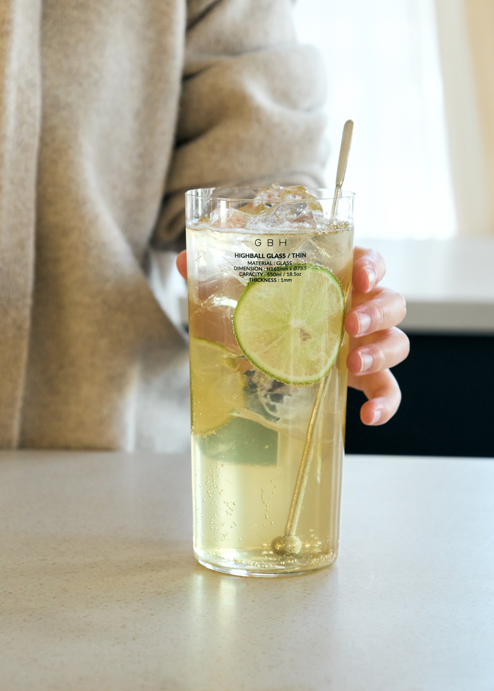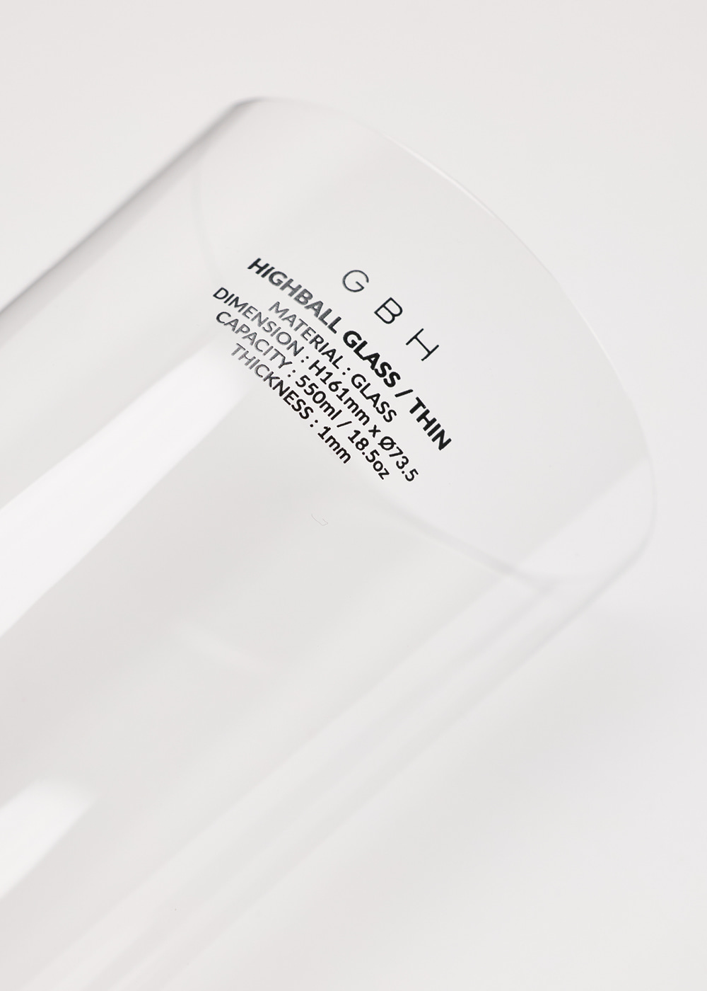 제품 설명 16cm 이상의 긴 높이와 550ml의 넉넉한 용량으로 다양한 음료를 여유롭게 즐길 수 있는 하이볼 글라스입니다. 주의 사항 - 전자레인지, 오븐, 식기세척기 사용이 불가합니다. - 부드러운 세척 도구를 이용한 손 세척을 권장합니다. - 세척 후 제품을 자연 건조하거나 부드러운 천을 이용하여 닦아 보관하는 것을 권장합니다. - 제품을 화기에 가까이 두지 말고 가열하지 마십시오. - 제품에 강한 충격을 가하지 마십시오. - 내열 유리재가 아니므로 급격한 온도 변화를 주지 마세요. - 제조 공정상, 림 부분에 굴곡이나 미세한 돌출이 있을 수 있습니다. - 제조 공정상, 표면이나 내부에 기포나 핀홀, 미세한 스크래치, 검은 점 등이 있을 수 있습니다. - 상온에서는 최대 50℃ 음료까지 사용 가능합니다. - 사이즈 : H161mm x Ø73.5 /120g - 용량 : 550ml / 18.5oz - 두께 : 1mm소재GLASS 원산지CHINA