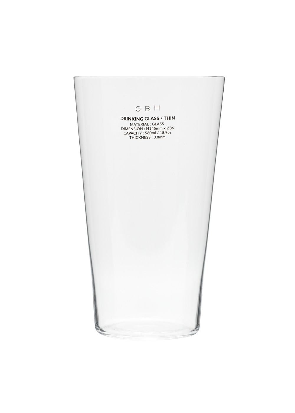 제품 설명 고급 와인잔에 사용되는 무납 크리스탈 소재로 일반 유리보다 강도와 탄성, 경량성이 우수하며, 0.8mm의 얇은 두께로 핸드메이드 제작되어 더욱 가볍고 섬세한 사용감을 전합니다. 주의 사항 - 전자레인지, 오븐, 식기세척기 사용이 불가합니다. - 부드러운 세척 도구를 이용한 손 세척을 권장합니다. - 제품을 화기에 가까이 두지 말고 가열하지 마십시오. - 제품에 강한 충격을 가하지 마십시오. - 내열 유리제가 아니므로 급격한 온도 변화를 주지 마세요. - 제조 공정상, 림 부분에 굴곡이나 미세한 돌출이 있을 수 있습니다. - 제조 공정상, 표면이나 내부에 기포나 핀홀, 미세한 스크래치, 검은 점 등이 있을 수 있습니다. - 상온에서는 최대 50℃ 음료까지 사용 가능합니다.사이즈 - 사이즈 : H145mm x Ø86 / 70g - 용량 : 560ml / 18.9oz - 두께 : 0.8mm소재GLASS 원산지 CHINA