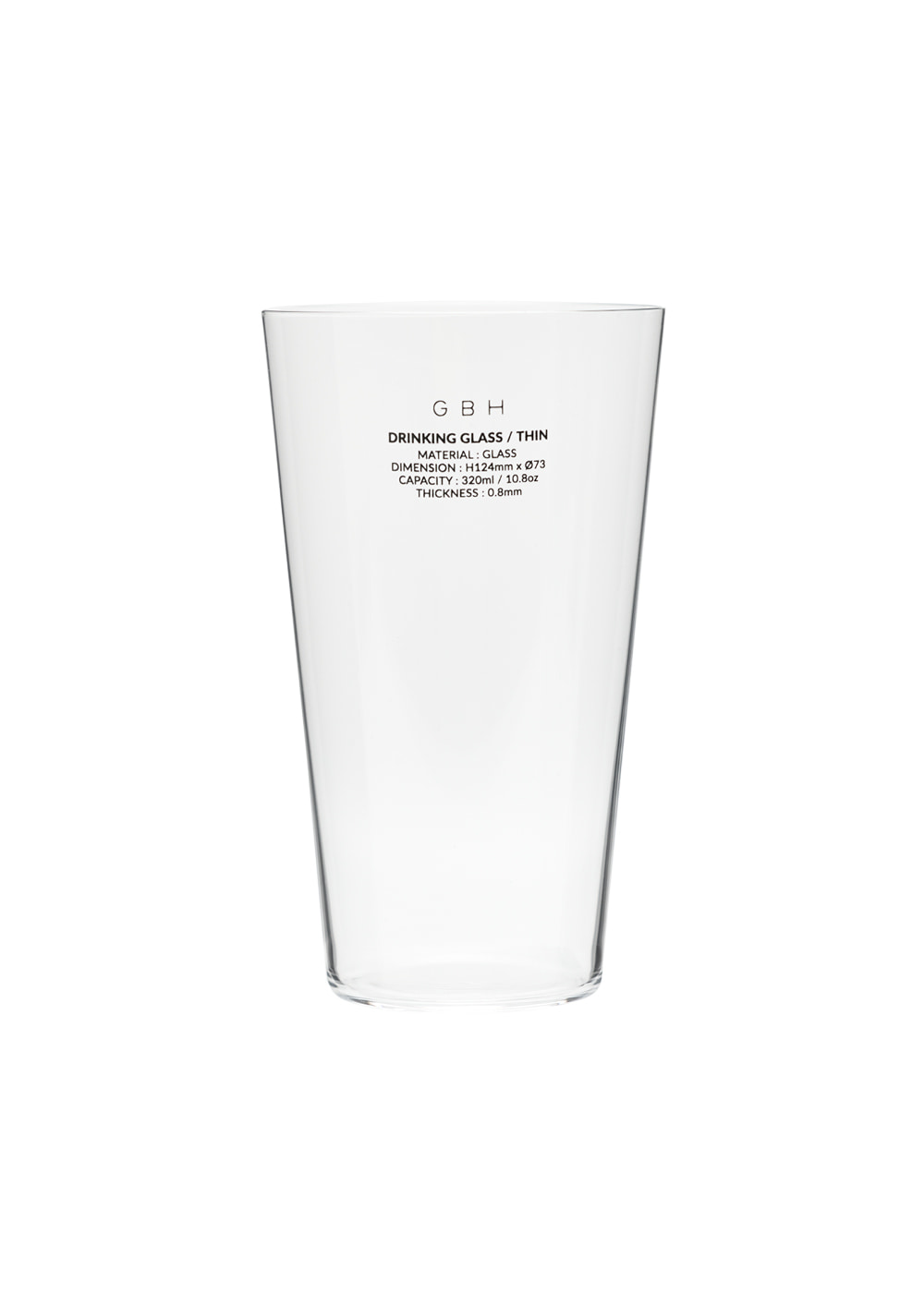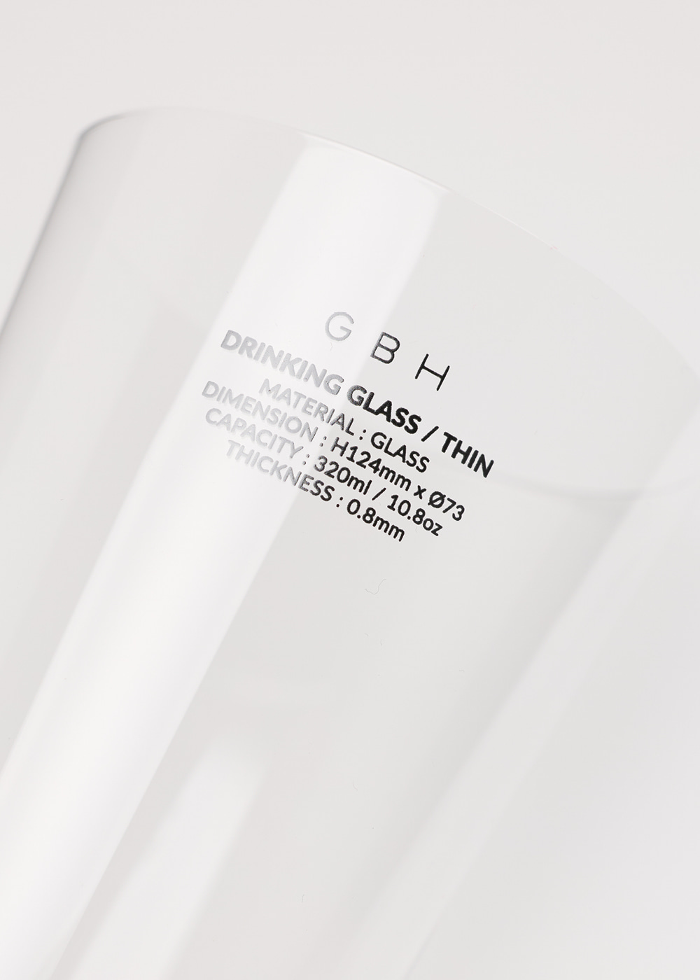 제품 설명 고급 와인잔에 사용되는 무납 크리스탈 소재로 일반 유리보다 강도와 탄성, 경량성이 우수하며, 0.8mm의 얇은 두께로 핸드메이드 제작되어 더욱 가볍고 섬세한 사용감을 전합니다. 주의 사항 - 전자레인지, 오븐, 식기세척기 사용이 불가합니다. - 부드러운 세척 도구를 이용한 손 세척을 권장합니다. - 제품을 화기에 가까이 두지 말고 가열하지 마십시오. - 제품에 강한 충격을 가하지 마십시오. - 내열 유리제가 아니므로 급격한 온도 변화를 주지 마세요. - 제조 공정상, 림 부분에 굴곡이나 미세한 돌출이 있을 수 있습니다. - 제조 공정상, 표면이나 내부에 기포나 핀홀, 미세한 스크래치, 검은 점 등이 있을 수 있습니다. - 상온에서는 최대 50℃ 음료까지 사용 가능합니다.사이즈 - 사이즈 : H124mm x Ø73 / 60g - 용량 : 320ml / 10.8oz - 두께 : 0.8mm소재GLASS 원산지 CHINA