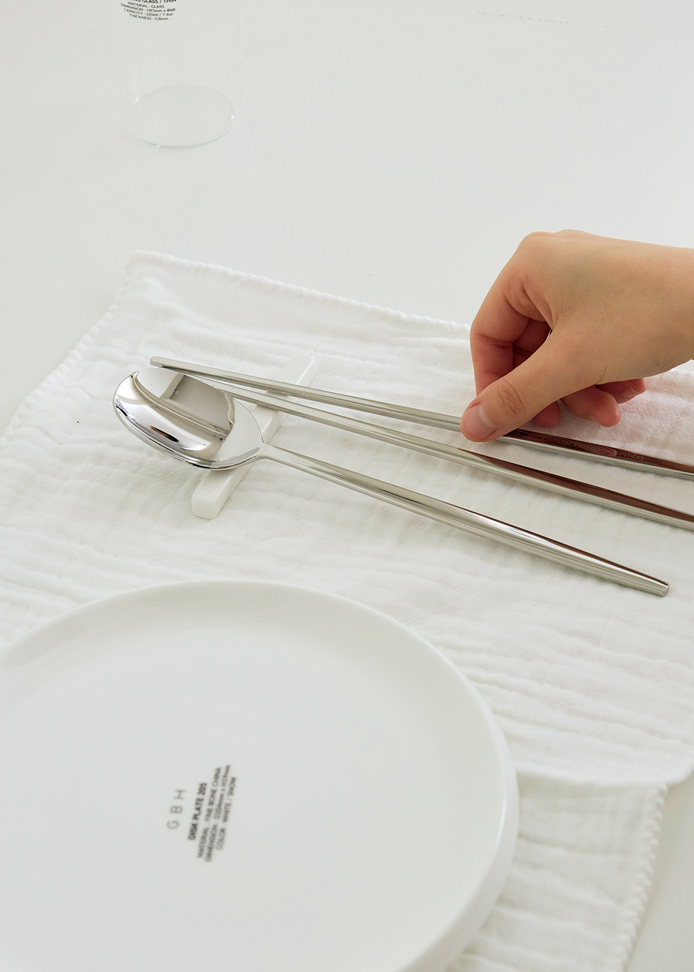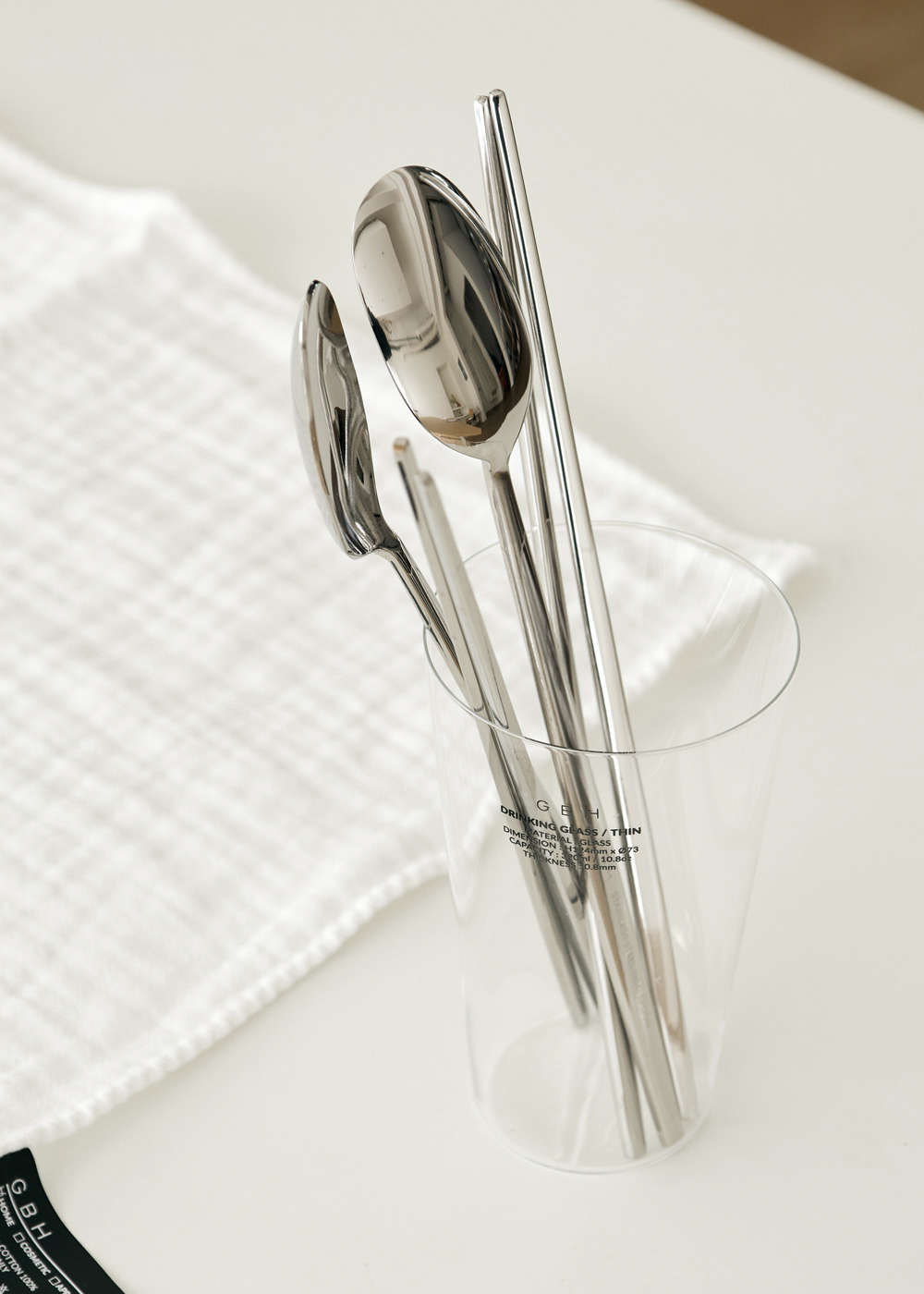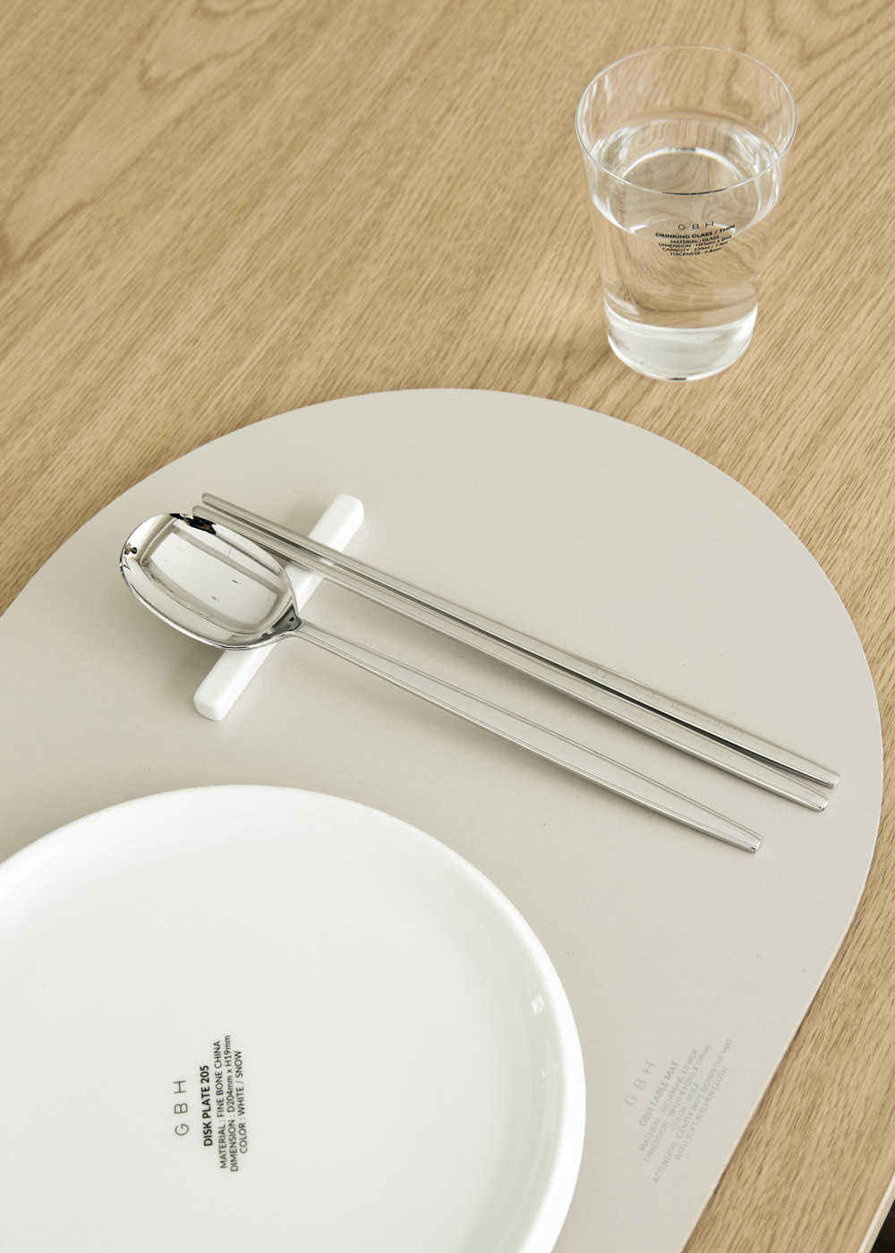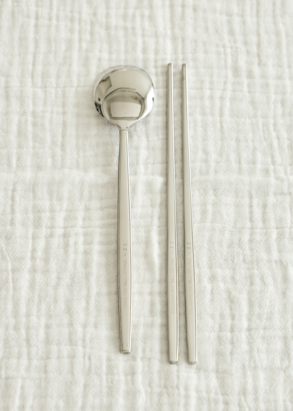제품 설명 스테인레스 소재로 내구성이 뛰어나며 GBH로고 레이저 각인이 세겨진 제품입니다. 곡선 형태의 라인은 수저&젓가락을 잡았을 때 그립감이 좋고 깨끗한 단면을 위해 수많은 공정 과정을 통해 완성되었습니다. 주의 사항 - 스테인레스 제작 공정상 미세한 얼룩 및 스크래치가 있을 수 있습니다. - 열전도율이 높은 소재로 화기에 가까이 두는 것을 금합니다. - 유광 제품의 경우 부드러운 수세미를 이용하여 사용하는 것을 권장합니다. - 연마제 제거 작업 후 출고되지만 사용 전 세척하여 사용하는 것을 권장합니다. - 지문, 얼룩 등의 사용감이 있을 경우 교환 / 환불이 불가합니다. 사이즈 - SPOON : 210mm / 55g - CHOPSTICKS : 220mm / 60g 소재STAINLESS STEEL (304) 원산지KOREA