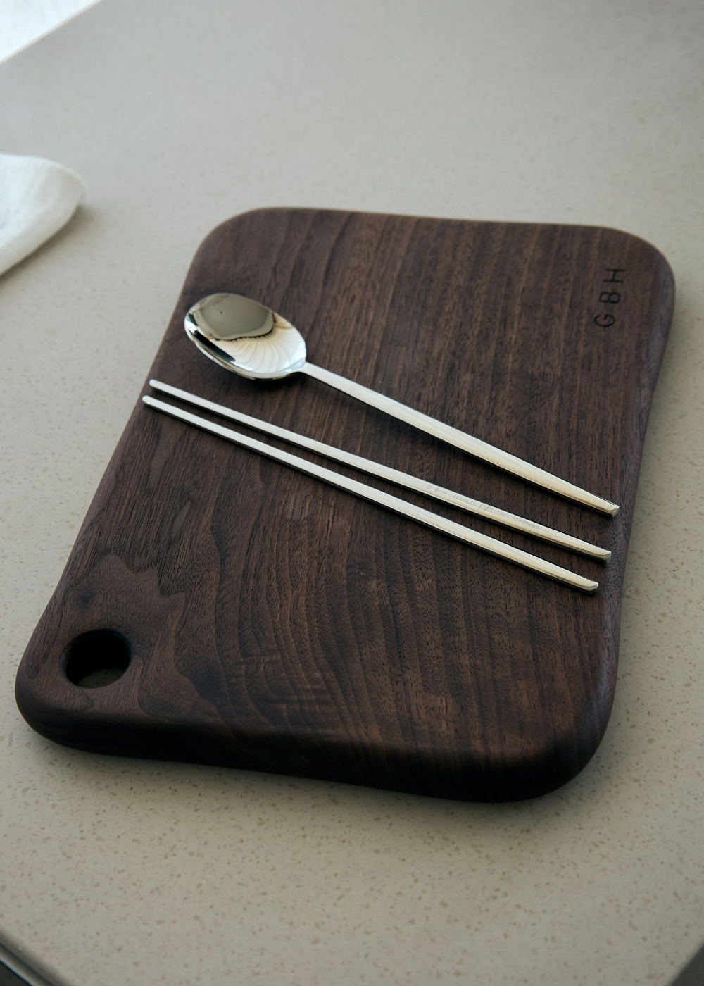 제품 설명 스테인레스 소재로 내구성이 뛰어나며 GBH로고 레이저 각인이 세겨진 제품입니다. 곡선 형태의 라인은 수저&젓가락을 잡았을 때 그립감이 좋고 깨끗한 단면을 위해 수많은 공정 과정을 통해 완성되었습니다. 주의 사항 - 스테인레스 제작 공정상 미세한 얼룩 및 스크래치가 있을 수 있습니다. - 열전도율이 높은 소재로 화기에 가까이 두는 것을 금합니다. - 유광 제품의 경우 부드러운 수세미를 이용하여 사용하는 것을 권장합니다. - 연마제 제거 작업 후 출고되지만 사용 전 세척하여 사용하는 것을 권장합니다. - 지문, 얼룩 등의 사용감이 있을 경우 교환 / 환불이 불가합니다. 사이즈 - SPOON : 210mm / 55g - CHOPSTICKS : 220mm / 60g 소재STAINLESS STEEL (304) 원산지KOREA