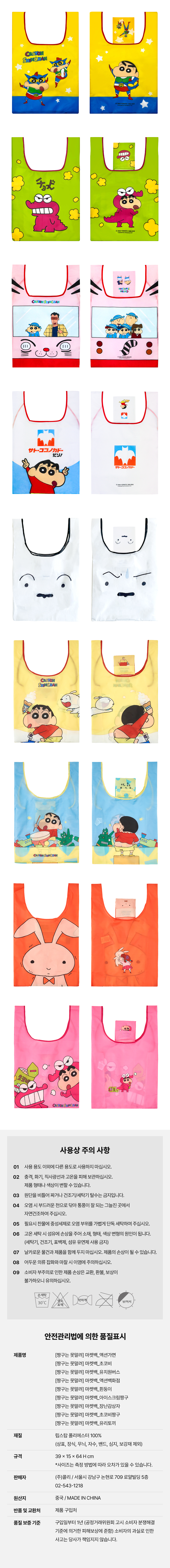 짱구는 못말려 장바구니 마켓백 9종