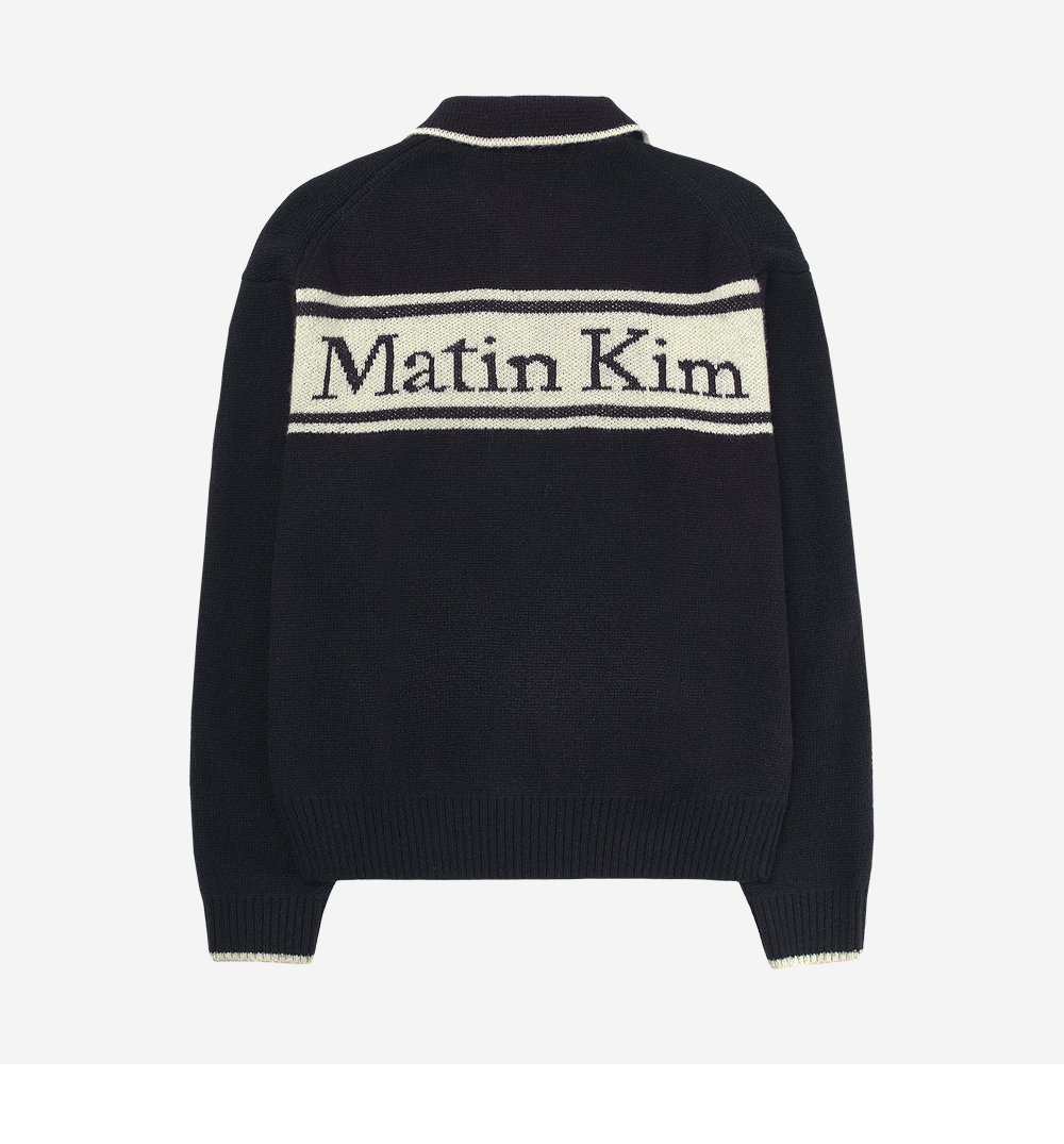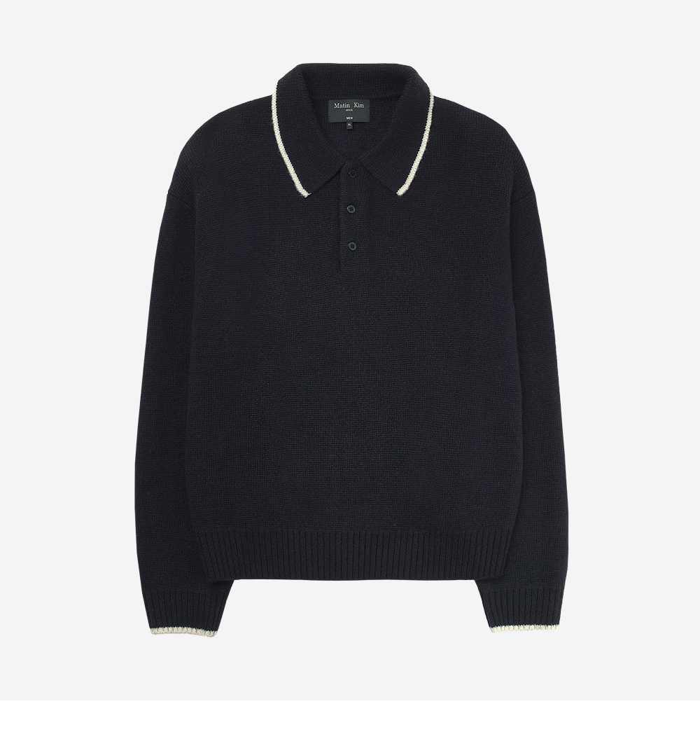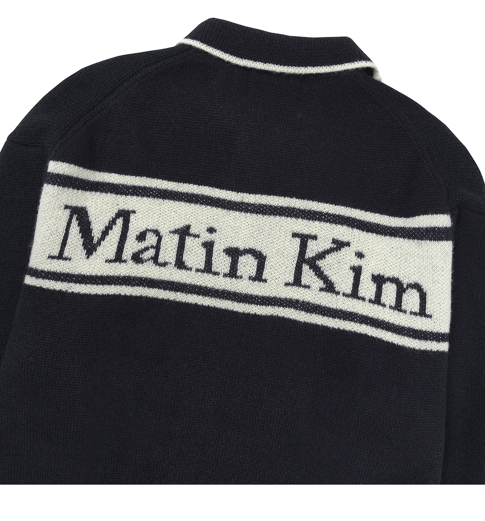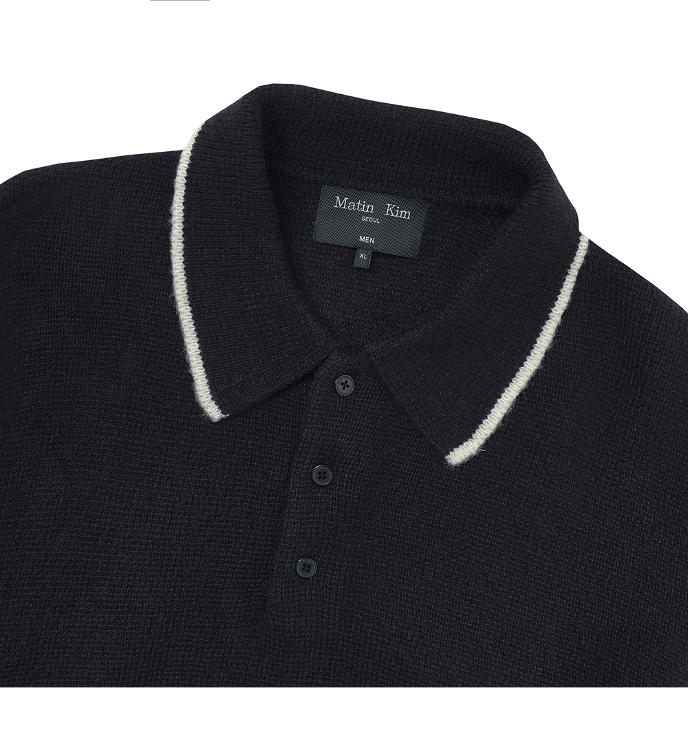 마뗑킴 백 로고 칼라 니트 탑 다크 네이비