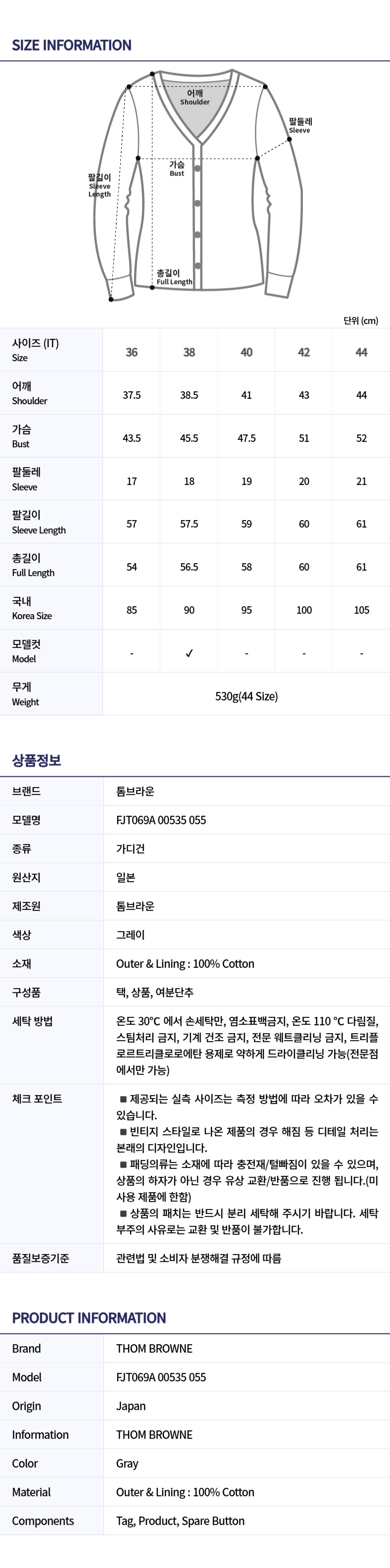 [15% 쿠폰] (W) 톰브라운 루프백 저지 사선 가디건 라이트 그레이