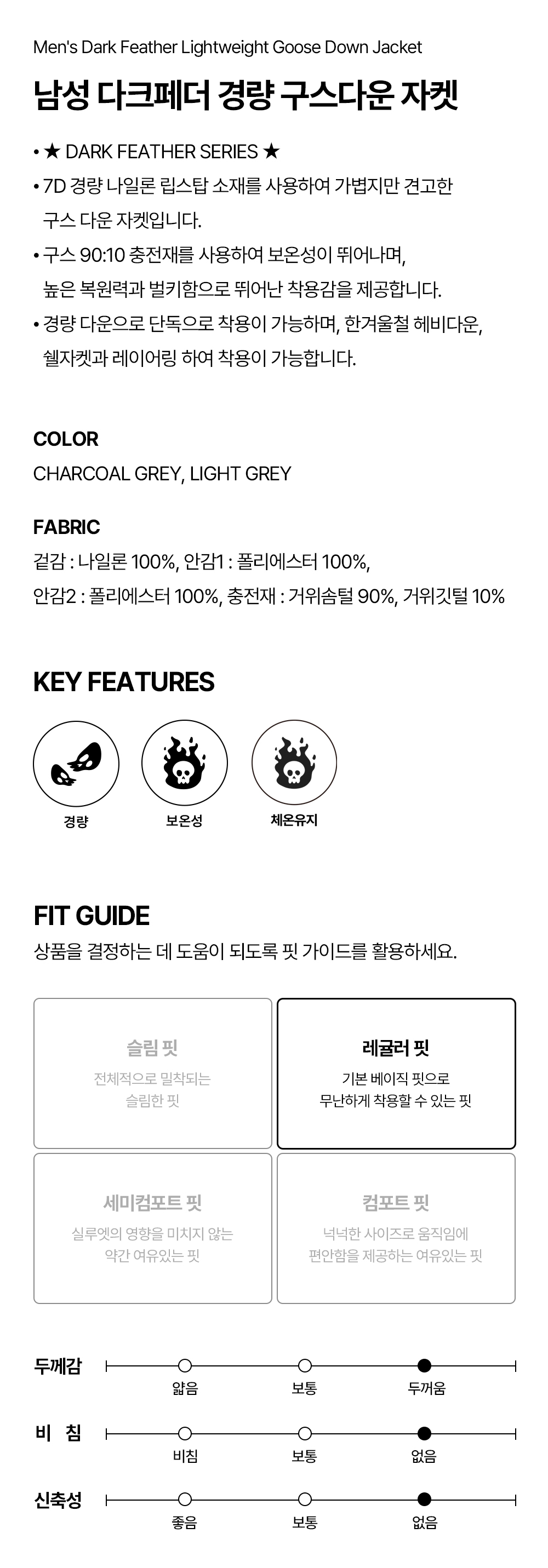 하이드로겐 남성 다크페더 경량 구스다운 자켓 멜란지 그레이