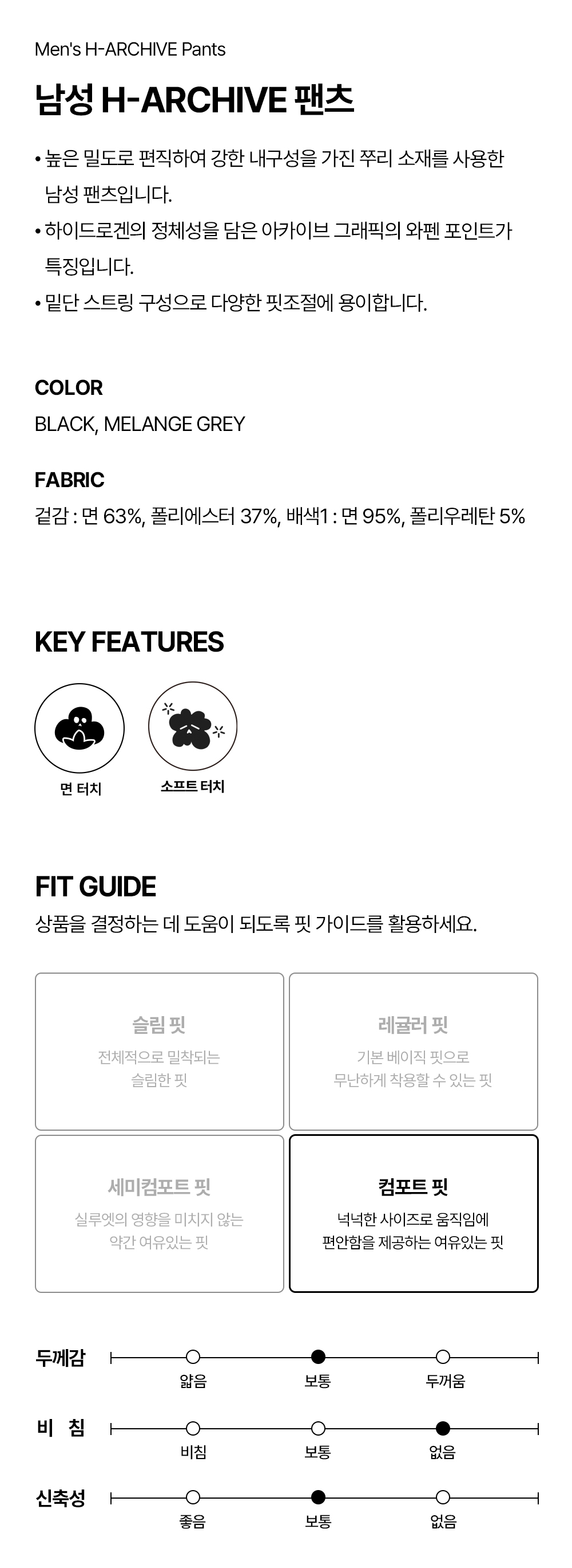 하이드로겐 남성 H-ARCHIVE 팬츠 멜란지 그레이