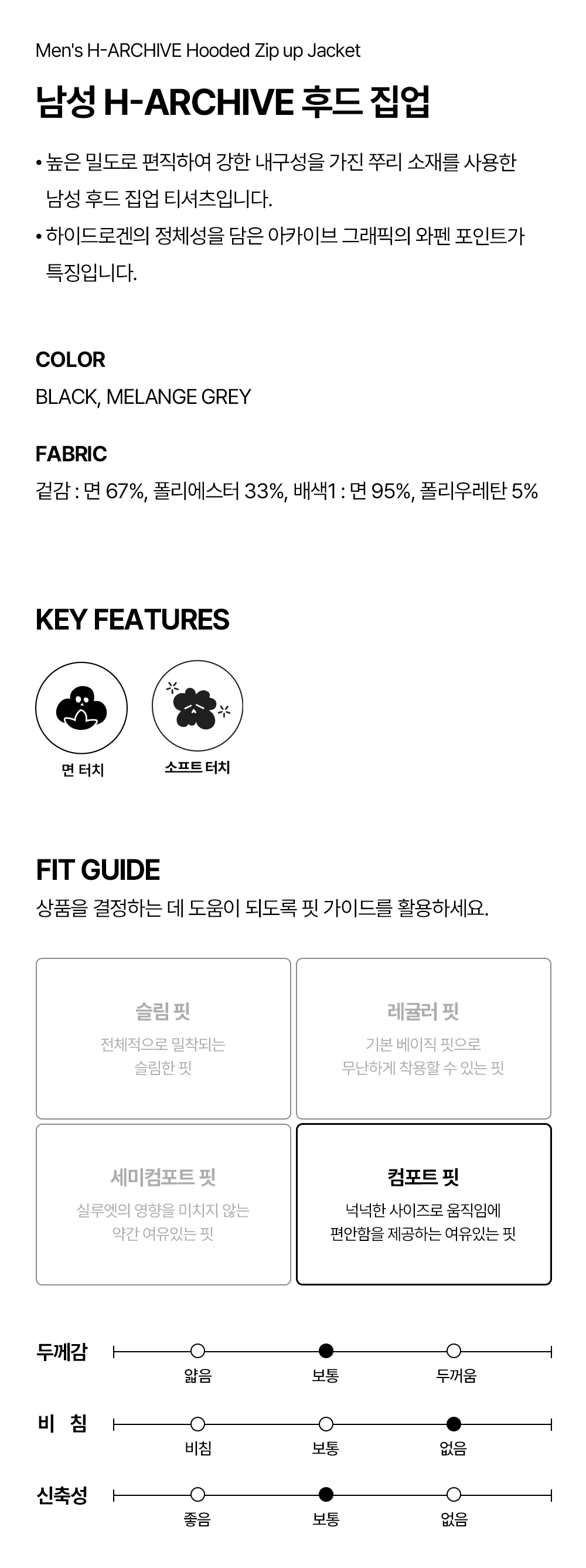 하이드로겐 남성 H-ARCHIVE 후드 집업 블랙