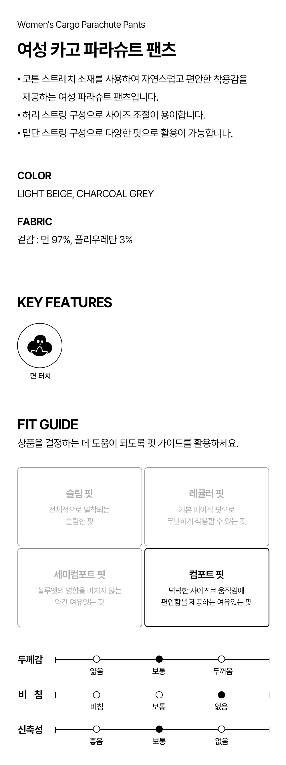 하이드로겐 여성 카고 파라슈트 팬츠 베이지