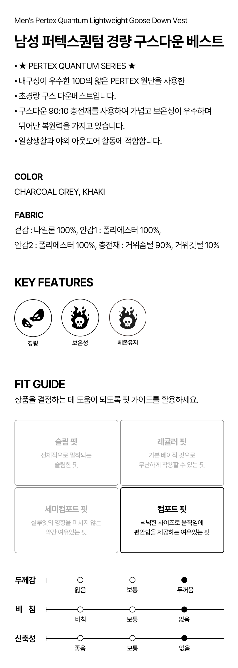 하이드로겐 남성 퍼텍스퀀텀 경량 구스다운 베스트 카키