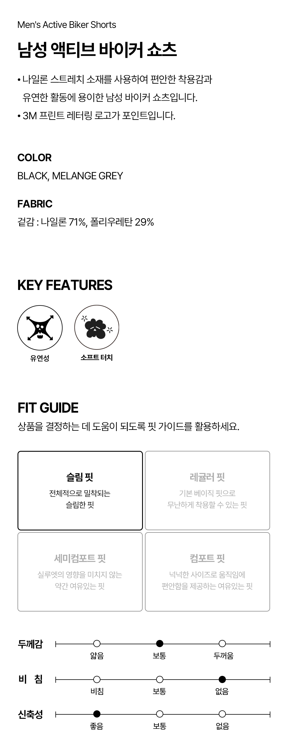 하이드로겐 남성 액티브 바이커 쇼츠 블랙