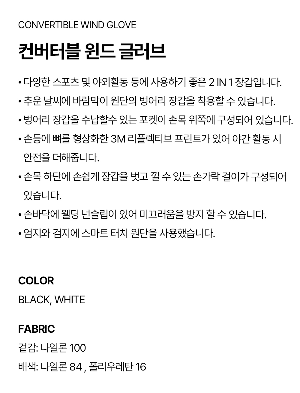 하이드로겐 컨버터블 윈드 글러브 화이트