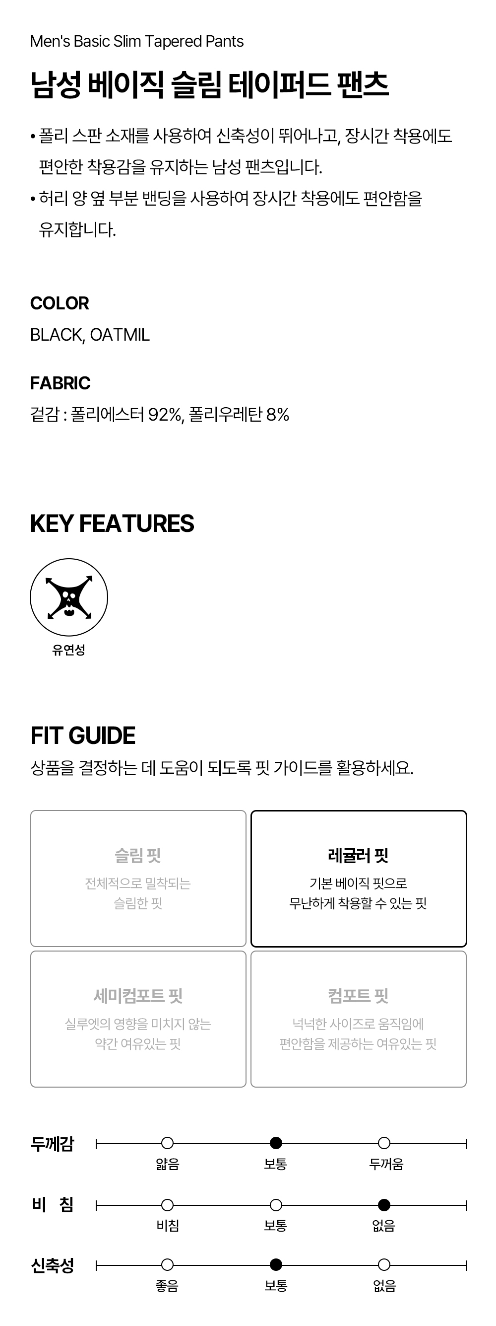 하이드로겐 남성 베이직 슬림 테이퍼드 팬츠 블랙