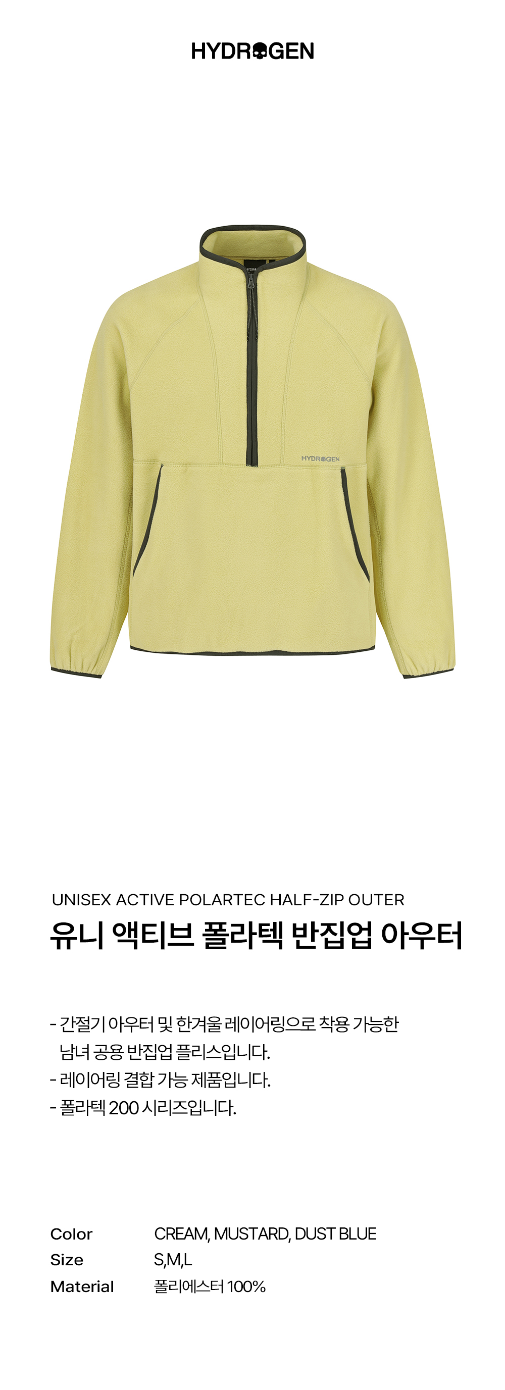 하이드로겐 유니 액티브 폴라텍 반집업 아우터 머스타드