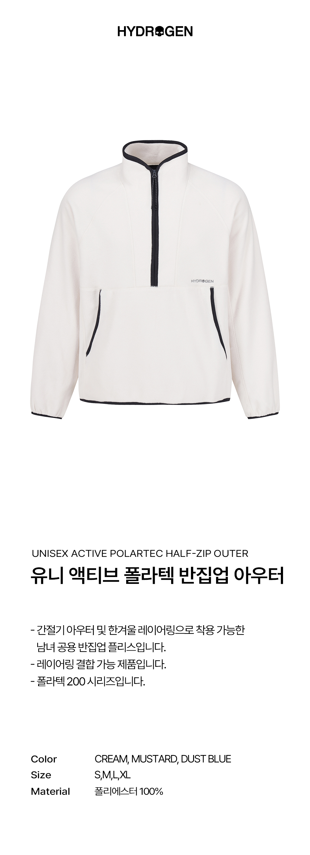 하이드로겐 유니 액티브 폴라텍 반집업 아우터 아이보리