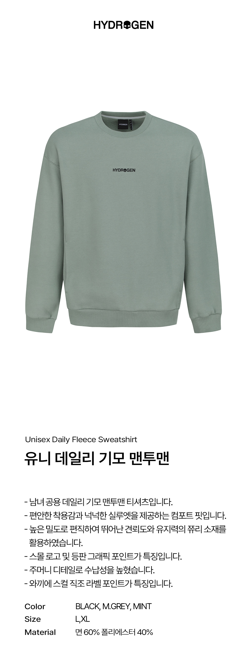 하이드로겐 유니 데일리 기모 맨투맨 민트