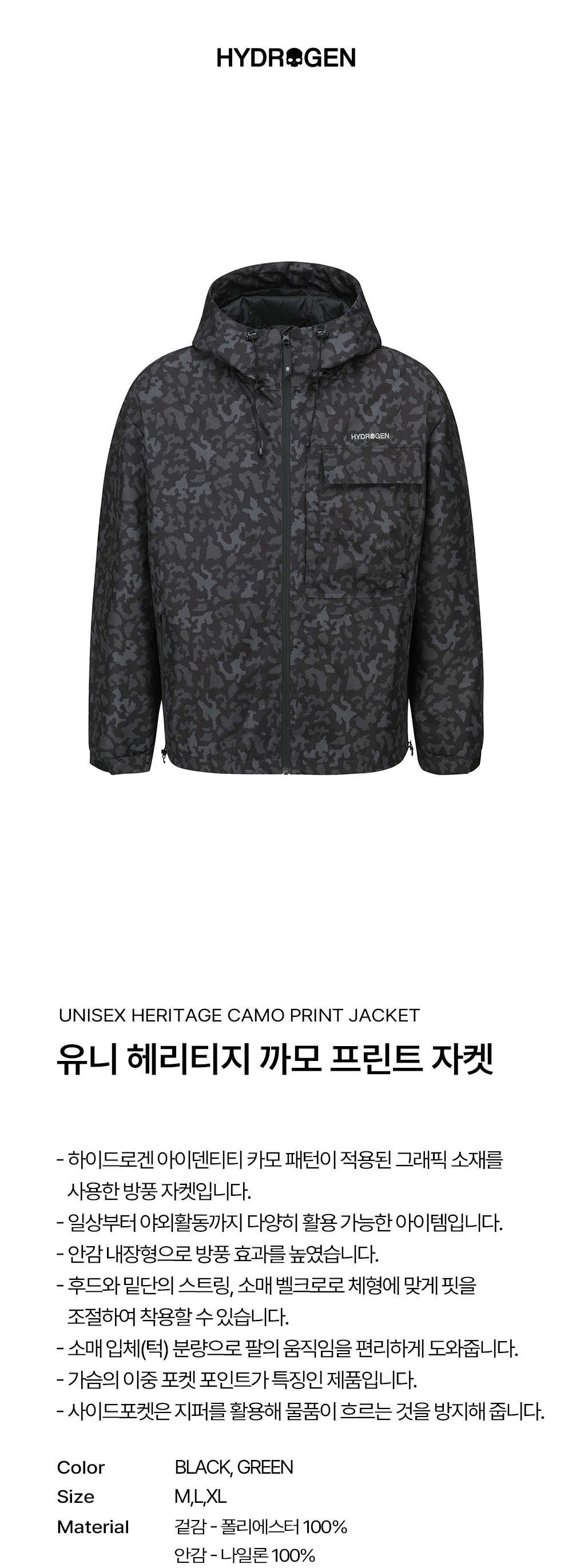 하이드로겐 유니 헤리티지 까모 프린트 자켓 블랙