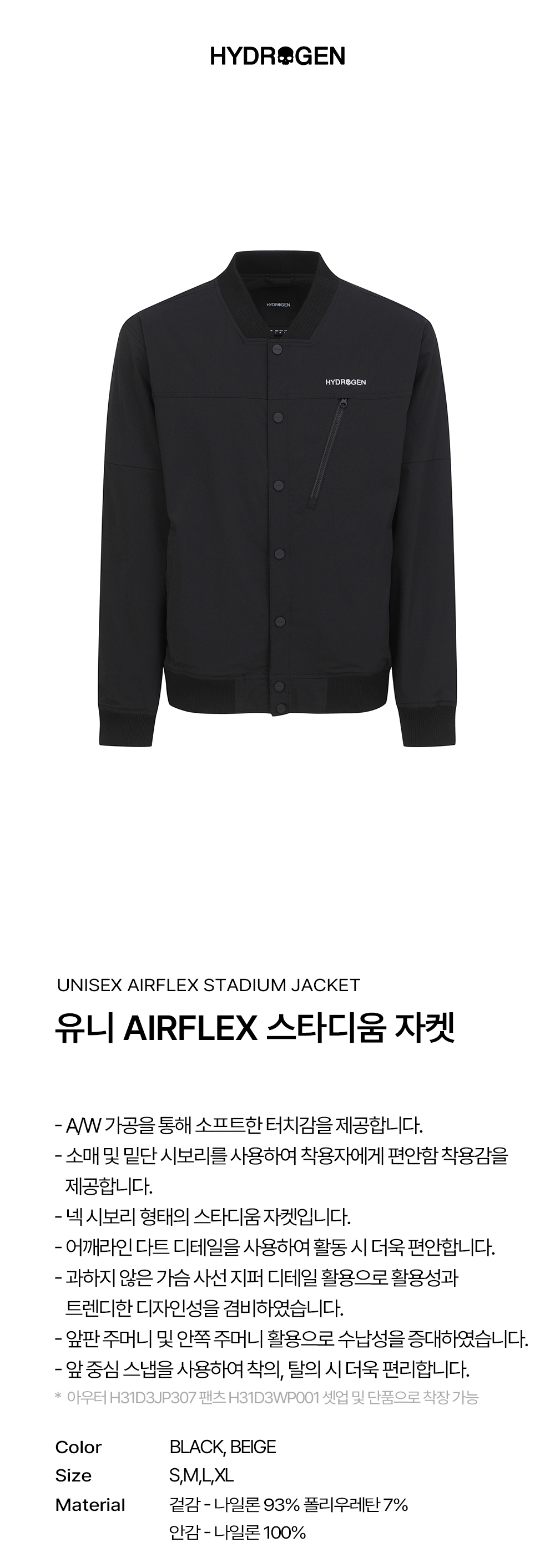 하이드로겐 유니 AIRFLEX 스타디움 자켓 블랙