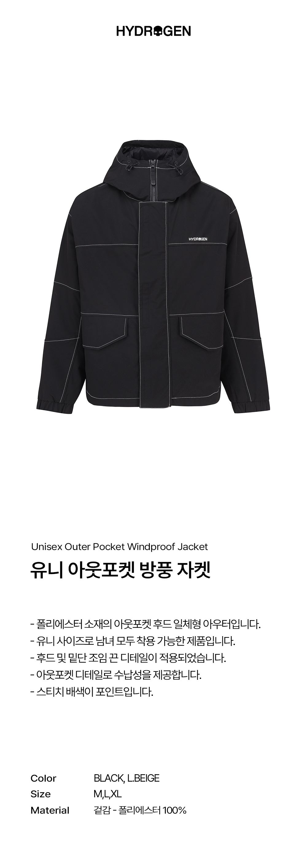 하이드로겐 유니 아웃포켓 방풍 자켓 블랙