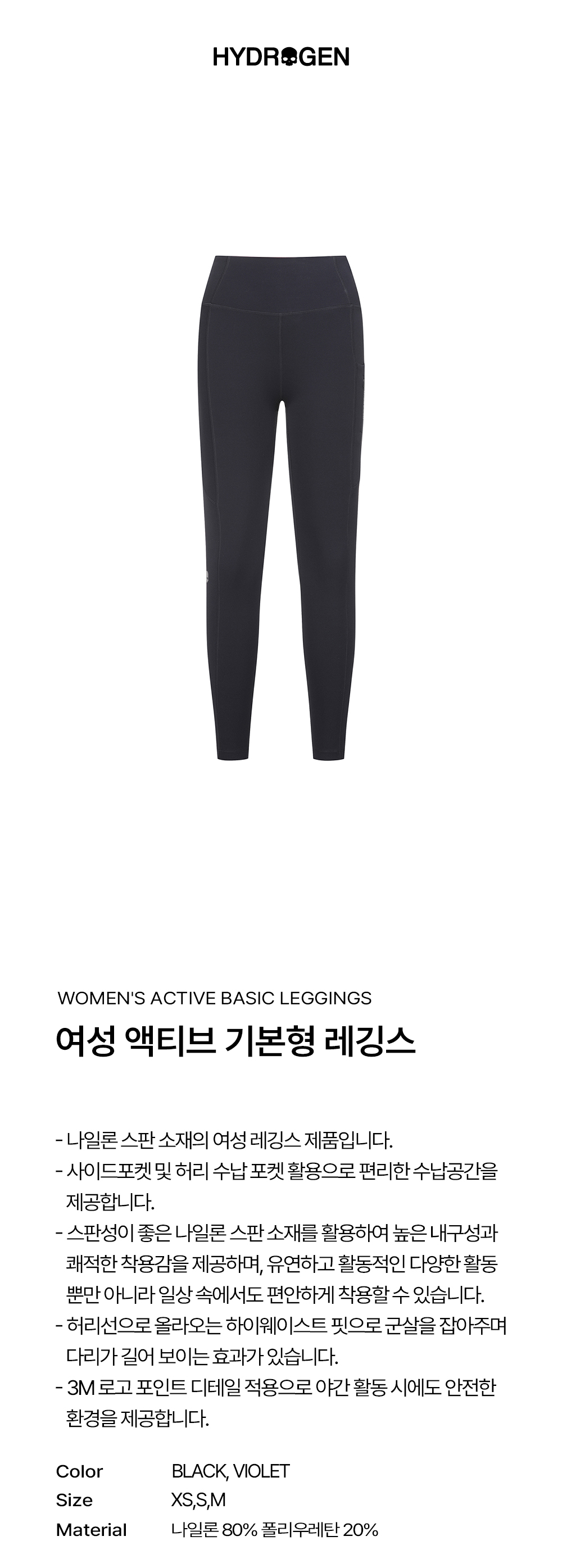 하이드로겐 여성 액티브 기본형 레깅스 블랙